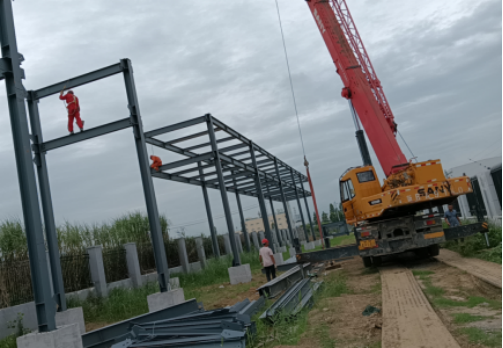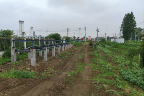 1.潜江市独立工矿区化工管廊及配套设施项目1#线(北旭晶瑞夹角段)正进行管廊架安装,工程进度达40%。