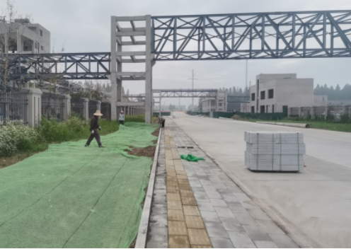 2.园区东路北延项目一期东侧人行道面砖铺设,工程进度达40%。