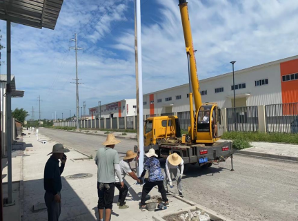 4、荷香路道路工程主体已完工,路灯安装已完成,正在进行道路划线施工。