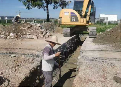 3、盐化路升级改造项目已完成加宽断面路基施工,正在进行过路排水管、检查井施工。
