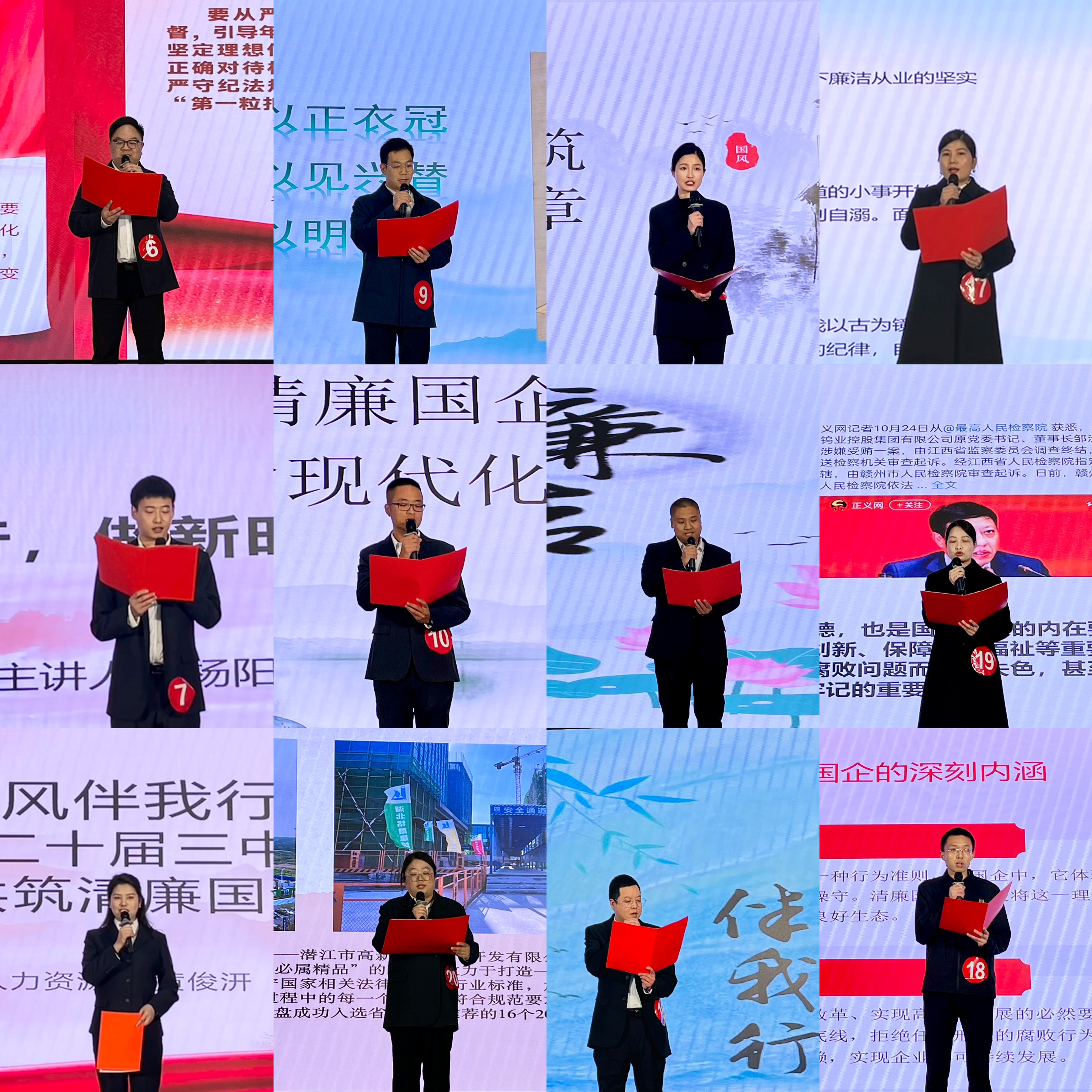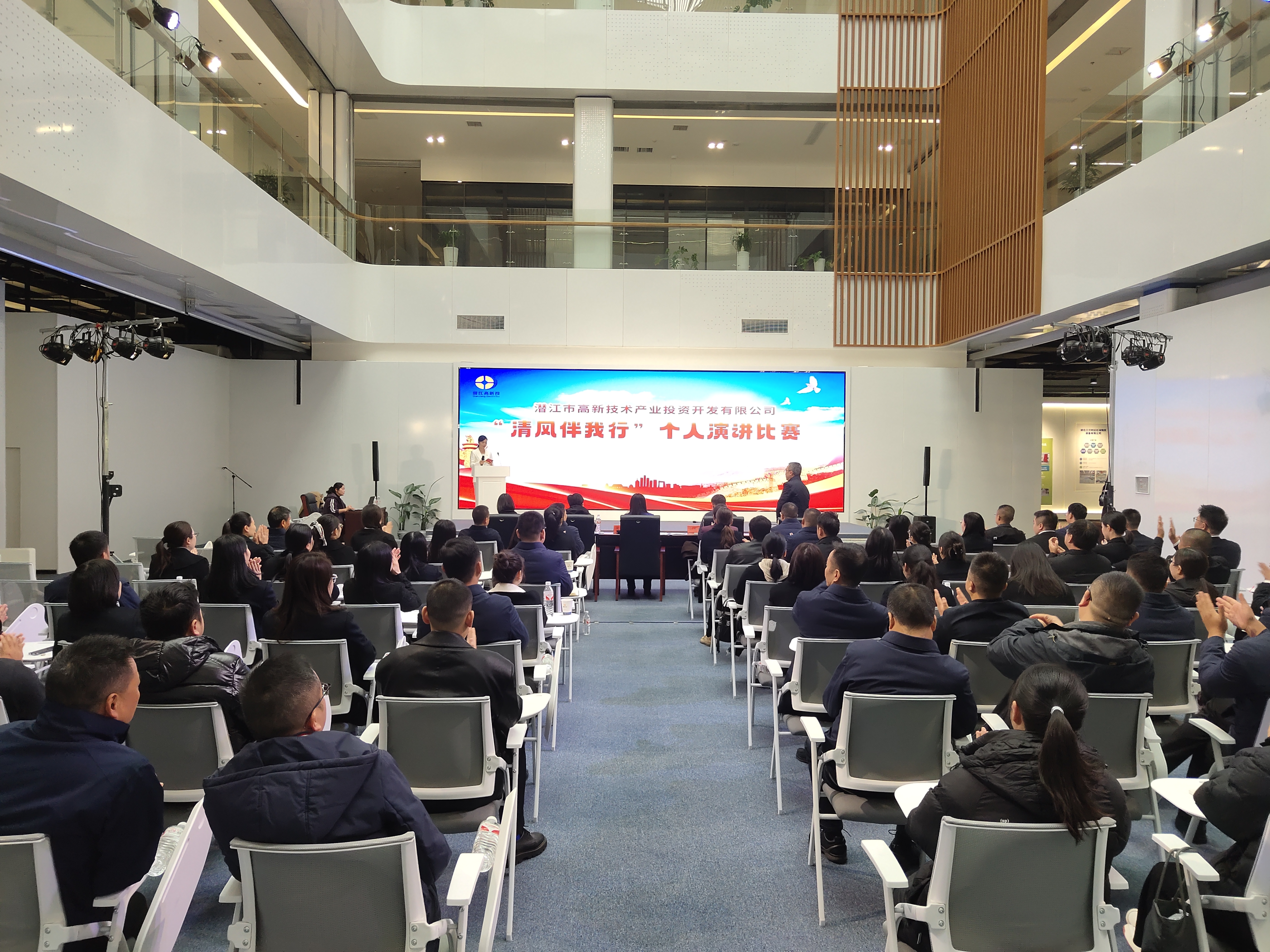 为深入学习贯彻党的二十届三中全会精神,进一步弘扬新时代廉洁文化,引导干部职工牢记初心使命,树立正确的事业观、权力观、价值观。11月19日,QY千亿球友会举办“清风伴我行”演讲比赛。本次比赛特邀市委宣传部副部长侯艳丽、市纪委常委邱先俊、市委市属国企工委委员郭亚林及中国作家协会、潜江市作家协会副主席黍不语,QY千亿球友会党委书记、董事长刘正中担任评委。公司领导班子成员、全体干部职工等80余人观看了比赛。