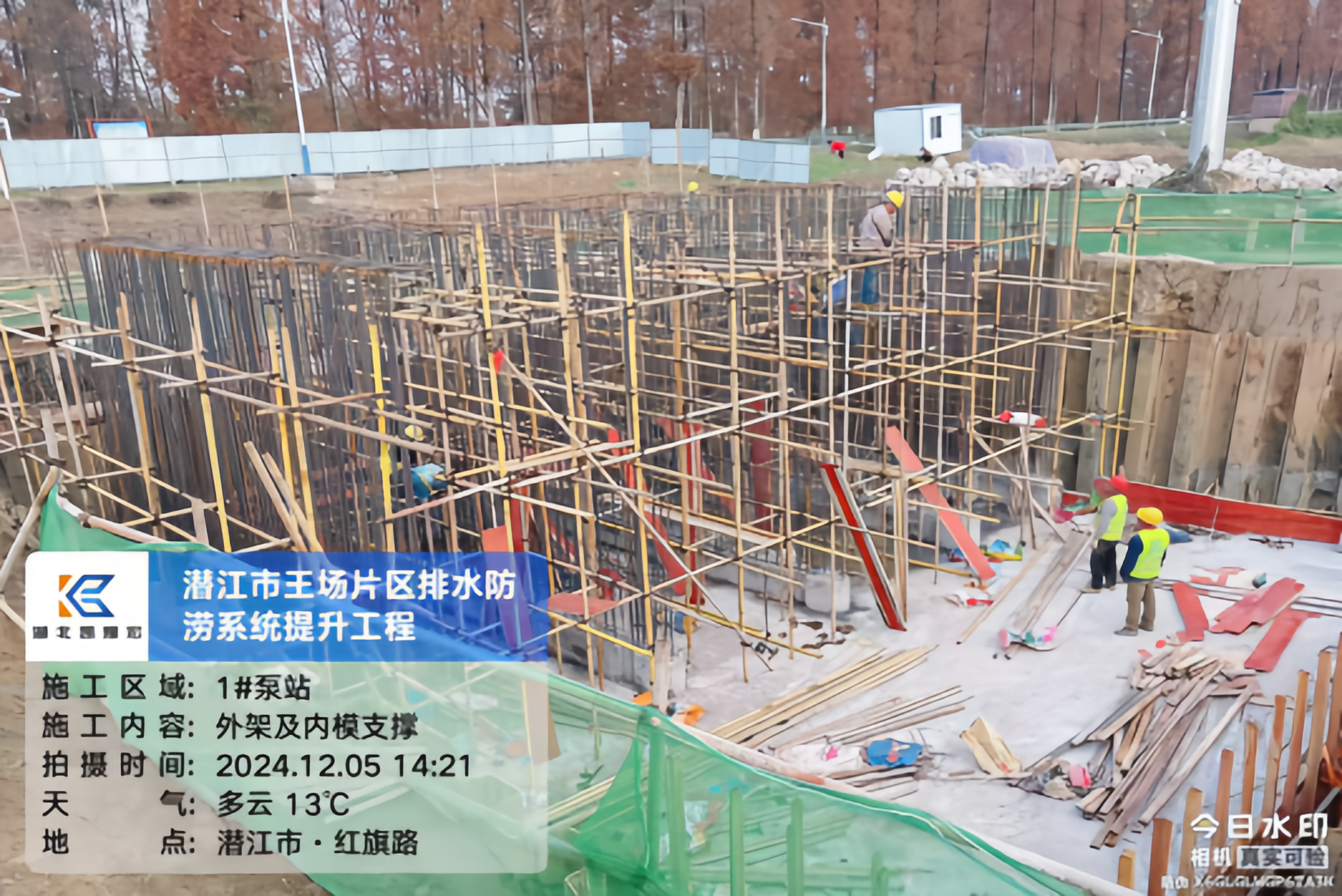 王场片区排水防涝系统提升项目正进行旋喷桩浇筑及泵房主体施工。