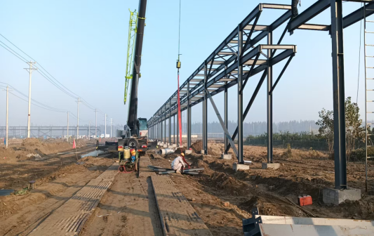 潜江市独立工矿区化工管廊及配套设施项目阿科力、盐穴储气库至晶瑞路段工程已完成基础结构部分施工,正在进行钢结构安装。